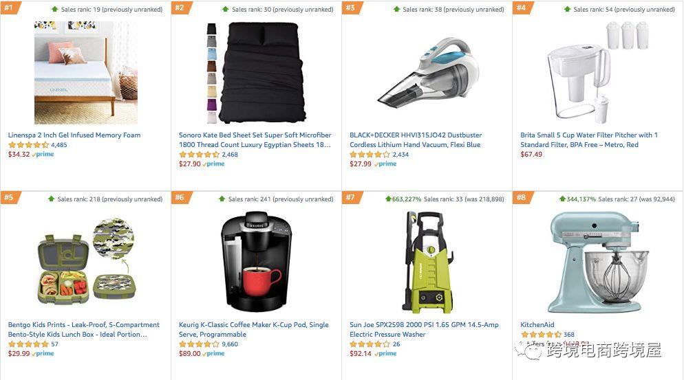 PrimeDay开始,亚马逊很多类目产品的排名都发生了剧变。在PrimeDay大幅爆单的,销售排名上升成千上万的单品不在少数。分析亚马逊飙升榜(Movers & Shakers),为下半年选品提供一个非常重要的思路。而复盘飙升榜中同品类的产品,则有助于优化整体的运营方法。这里,我们为大家整理了多个品类中飙升榜排名靠前的产品。各位可以找到自己的品类,挖掘排名暴涨背后的秘密。