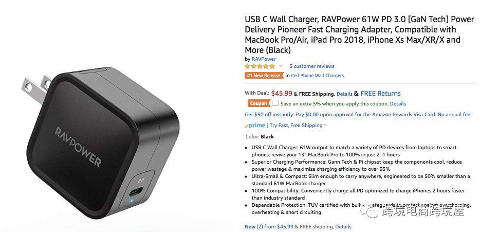 随后,泽宝的RavPower、傲基的Aukey等都推出了GaN充电器,相比传统充电器产品,体积更小,功率更强!在亚马逊上,新品表现都非常好。