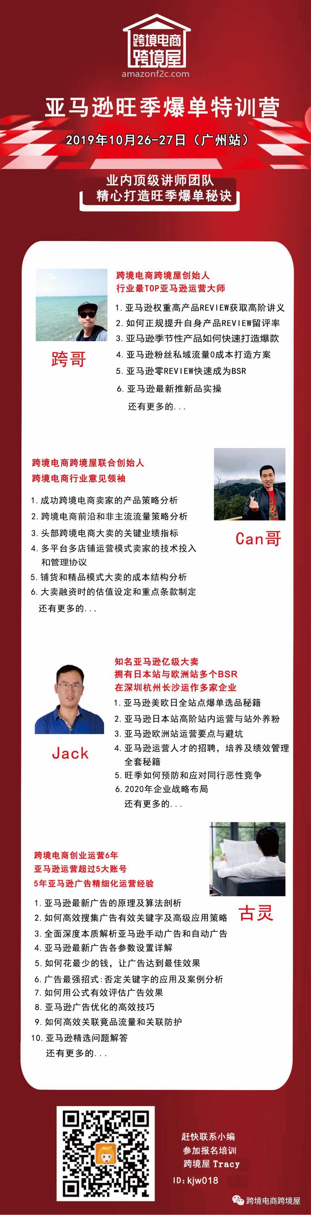 10月26和27日两天,跨境屋亚马逊旺季爆单特训营,今年最后一次运营课程,在广州,等你!
