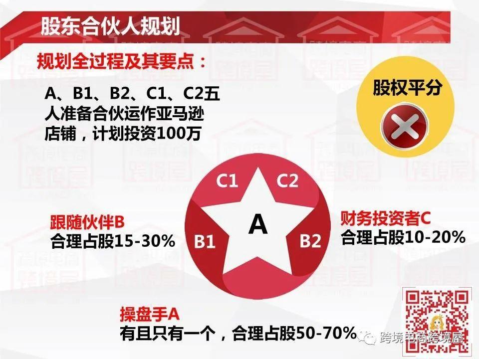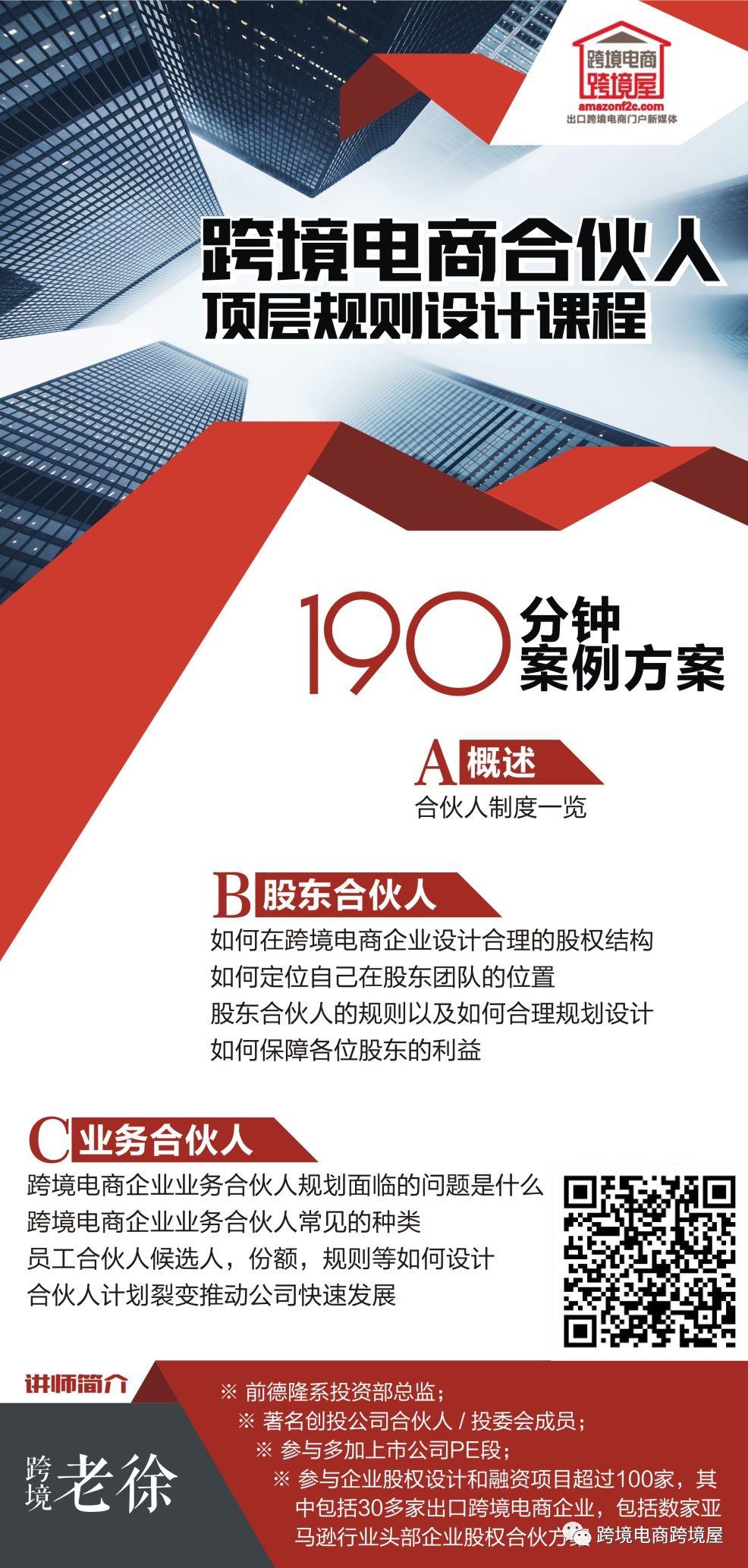 众多跨境电商顶级企业近几年都实现了业绩快速增长,它们的顶层设计、股权激励、合伙人计划,都非常值得广大跨境电商卖家学习!要知道跨境电商企业顶层设计的核心要点,跨境屋特别邀请了跨境电商股权激励和顶层设计领域的专家,用真实可行、深入浅出的案例,制作了跨境电商合伙人顶层规则设计课程,帮助大量的跨境电商卖家从顶层完善公司架构,帮助公司发展如虎添翼。