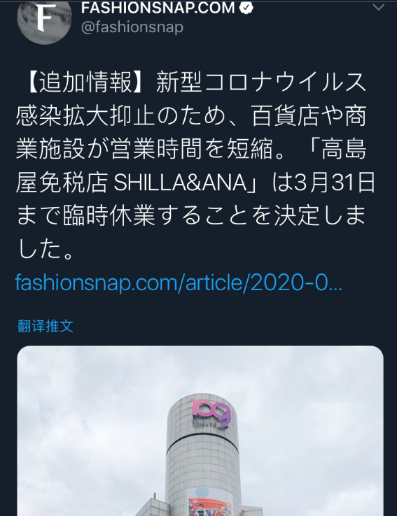 受疫情影响,日本目前很多百货商店开始休业,高岛屋免税店 SHILLA&ANA公告要休息到3月31号才开始营业。